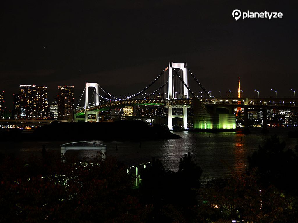 The suspended bridge connecting Odaiba and Shibaura is 918m long. You can walk on the footpath and enjoy the view. The illumination at night is spectacular. Or watch the sight of the rainbow bridge while riding the Yurikamome monorail, you can get the monorail from the Shimbashi station